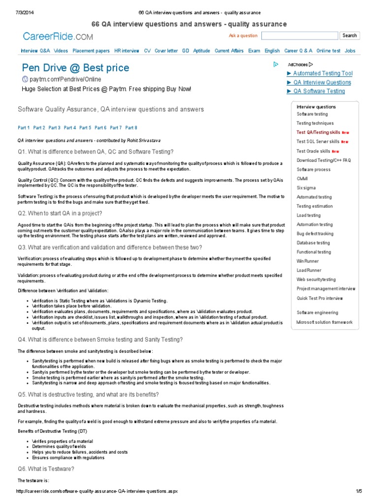 The role of QA Quality Assurance is to monitor the quality of. List of top 100 Quality Assurance QA Testing Interview Questions And Answers For Experienced Software QA Testing Interview Questions For Fresher Software Testing Manual Testing Automation Testing. Software Testing also provides an objective independent view of the software to allow the business to appreciate and understand the.