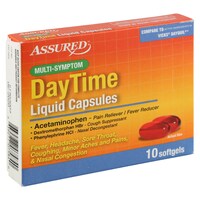 Shop Great Deals on. Assured Multi-Symptom DayTime Liquid Capsules 10-ct. There are 4 nighttime softgels that treat fever headache sore throat coughing minor aches and.