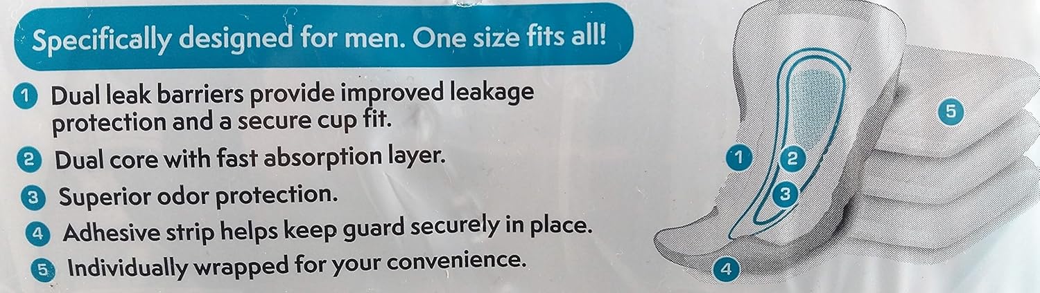Comes in a pack of 52 Specifically designed for men One size fits all Dual leak barriers provide improved leakage protection and a secure cup fit Dual core with fast absorption layer Superior odor protection Adhesive strip helps keep guard securely in place Individually wrapped for your convenience. Assurance Guards Underwear For Adult Men Maximum One Size Fits All 52 Count.