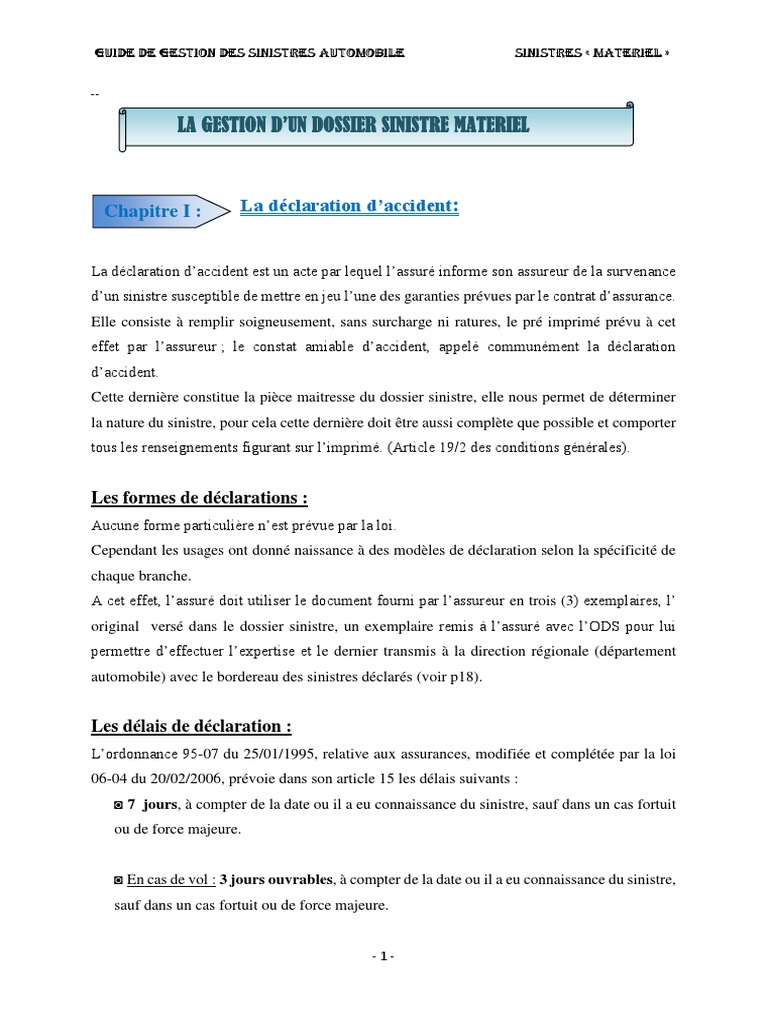 Theme Gestion Et Reglement Des Sinistres Automobiles Pdf Telechargement Gratuit